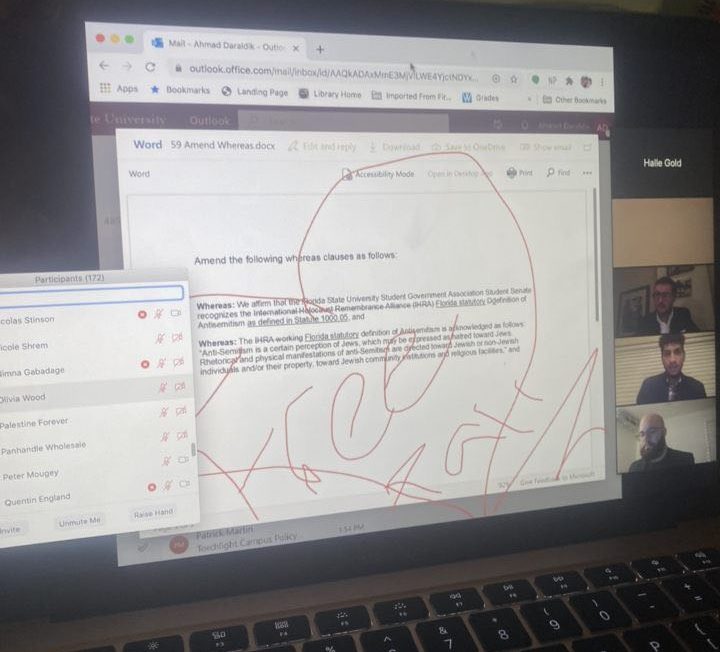 On June 18, 2020, Florida State University’s SGA Senate voted to keep Ahmad Daraldik in spite of the outcry from the Jewish community and its allies.